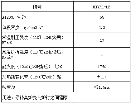 无水密封压入料是由耐火细骨料和粉料、结合剂和添加剂组成,是一种不含水分、以树脂为结合剂的膏状耐火材料。通过专用压入设备高压注射至高温设备缝隙或磨损部位(如工作衬与永久衬之间的接缝,耐火砖砌体和炉壳之间的缝隙等),具有良好的附着力和结合力、密封性好、高温体积稳定性好,能在高温下形成高强度、高密实的密封层。